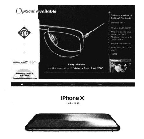 少的信息可以做到一目了然,快速形成第一印象。下面这张图片是我在很多年前刚参加工作的时候为一家公司设计的网站。当时互联网刚刚萌芽,我在一家公司短暂地做了一段时间网站构架师。除了负责公司的大型都市生活信息平台的构架设计,我也完成公司承接的一些企业的网站设计。而当时我的设计理念就是网站的设计一定要简洁明快、一目了然,不要轻易添加任何与主题无关的信息。就像这个网站的首页我只用了半张眼镜的照片,这样避免了设计的呆板。我之所以用黑色调而没有用亮色调,是为了借助明暗的对比来突显镜片的光亮感,特别是镜片的高光处通过明暗的反差,让其显得更加明亮。少的内容,突显少的部分都是在增强眼镜的明亮感。用单一的黑色还能给用户一种神秘感,让用户感觉黑色后面藏着很多内容,有种深厚的感觉,而浅色调给人的感觉是一眼见底。这个设计虽然在强调少但是涵盖的内容很多。那些多出来的内容就是大脑通过少量的内容延伸出来的内容。只有真正了解和认识到少的深层含义你才能游刃有余地使用它。你再看一下苹果官网设计,你会就会明白简洁明快的重要性。苹果官网20年来一直保持这种简洁明快的风格,可想苹果是多么重视“少”的设计理念。