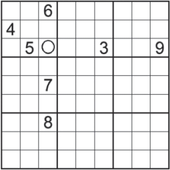 观察图25,圆圈单元格内是1、2候选,那么可以删除这个单元格上下左右4个单元格的1、2候选。而当C6的3提示不存在时,圆圈里是1、2、3候选,能删减上下左右四个单元格的2候选。这也是不连续数独的常见技巧。另外说明一下,这道题的已知数是我随便填的,只是做个图示,但是软件测试发现是有唯一解的,可无法通过逻辑解开,而且通过软件解起来也非常麻烦。