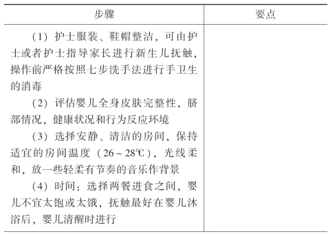 (5)选择适当的时间,避开宝宝感觉疲劳、饥渴或烦躁时;最好在宝宝洗澡或换衣过程中进行。