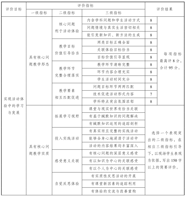 核心问题教学评价表