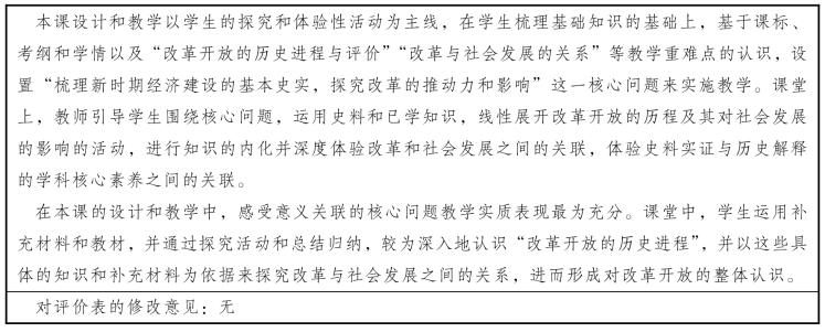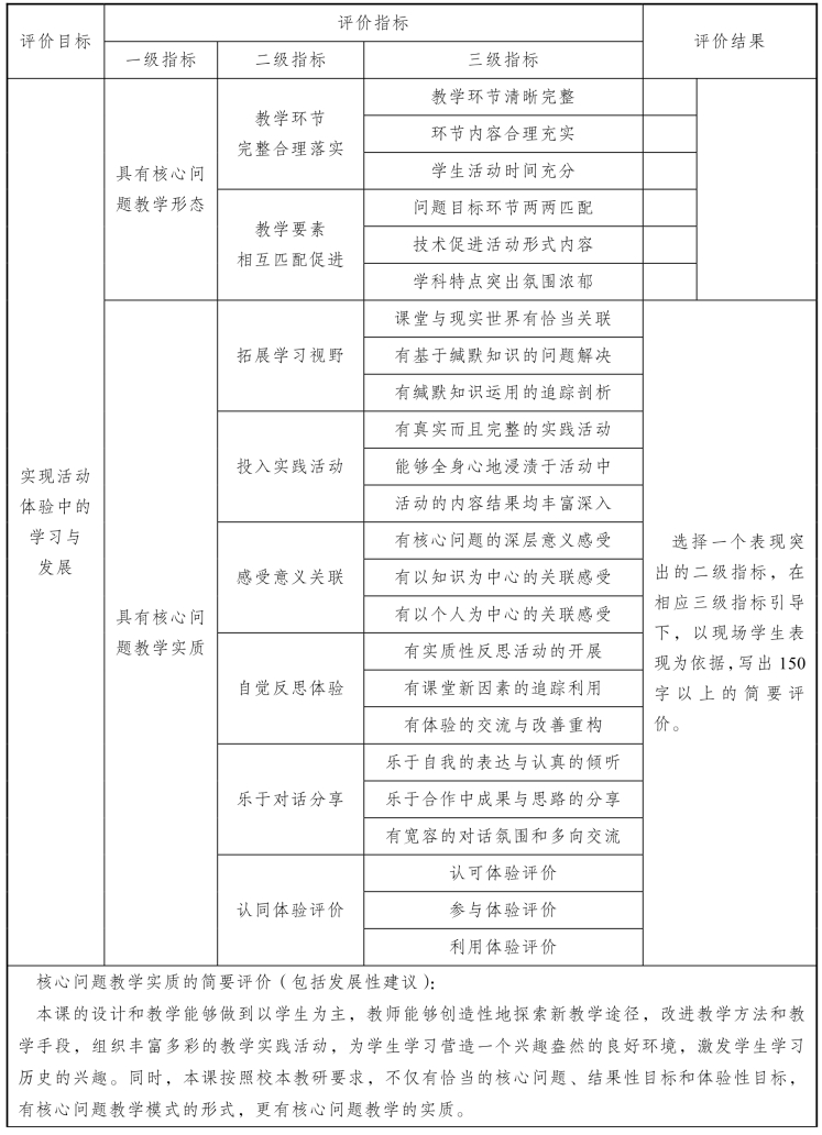 核心问题教学评价表