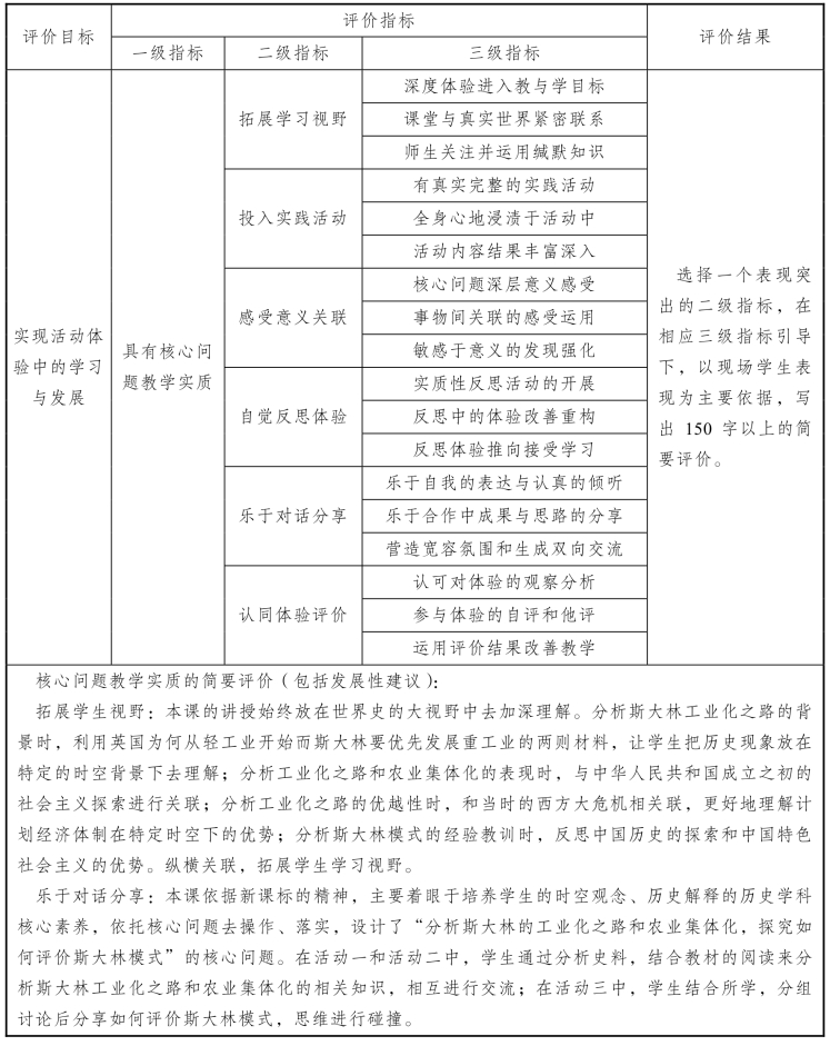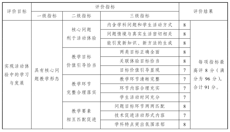 核心问题教学评价表