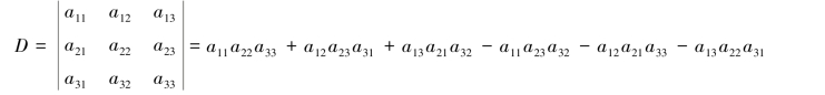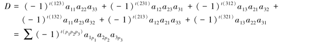 其中,t(p1p2p3)为排列p1p2p3的逆序数;Σ表示对1,2,3三个数的所有排列p1p2p3取和.这是三阶行列式的又一种定义形式.