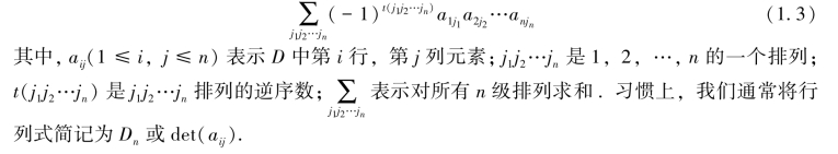 为n阶行列式,其值等于所有取自不同行不同列的n个元素乘积的代数和