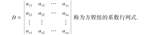 与1.1.1中二元线性方程组类似,可以用n阶行列式求解n元线性方程组,为此引进克拉默法则.
