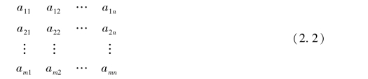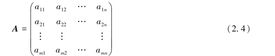 称其为m行n列矩阵(matrix),简称m×n矩阵.这m×n个数称为矩阵A的元素,aij表示矩阵A的第i行第j列的元素.式(2.4)也可简记为
