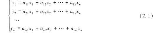 在许多问题中,我们会遇到一些变量用另外一些变量来线性表示的情况.设变量y1,y2,…,ym能用变量x1,x2,…,xn线性表示,即