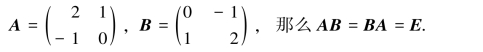 (3)矩阵的乘法一般不满足交换律,即一般地,AB≠BA.特殊,对于同阶方阵A,B若满足AB=BA,则称其相乘是可交换的,比如