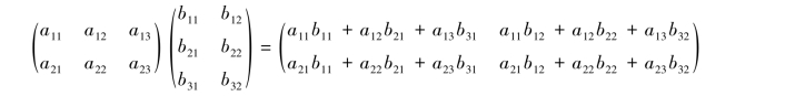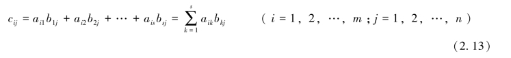 定义2.2.3 设A=(aij)m×s是一个m×s矩阵,B=(bij)s×n是一个s×n矩阵,则规定矩阵A与B的乘积是一个m×n矩阵C=(cij)m×n,其中