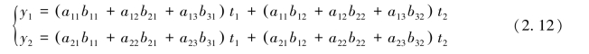 若想求出从t1,t2到y1,y2的线性变换,可将式(2.11)代入式(2.10),便得到