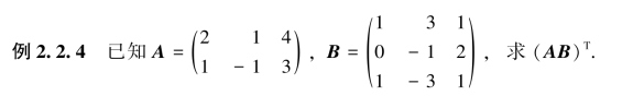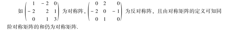 例2.2.5 已知A是对称阵,B是反对称阵,即AT=A,BT=-B,求证:(1)B2是对称阵;(2)AB+BA是反对称阵.