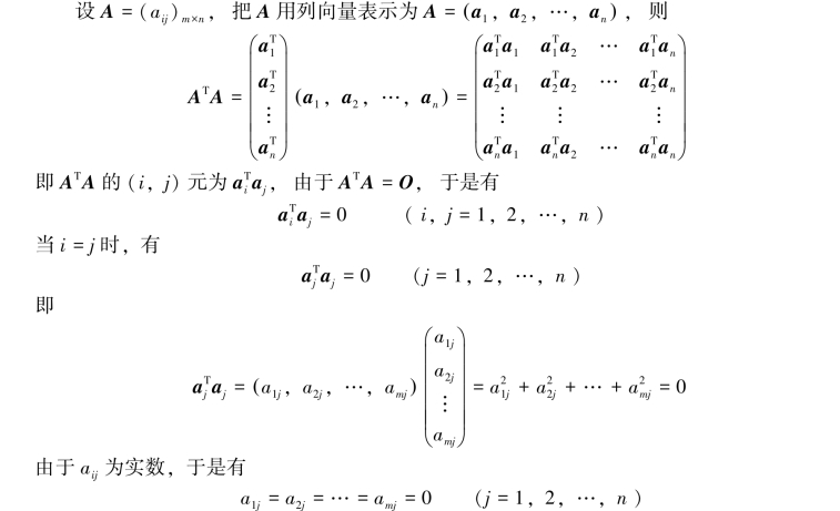 例2.4.2 证明矩阵A=O的充分必要条件是方阵ATA=O.
