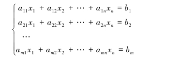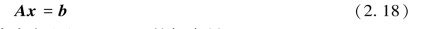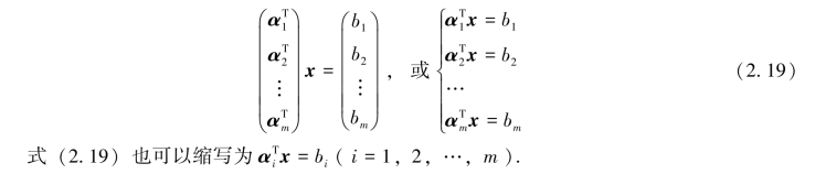 式(2.18)以向量x为未知元,它的解称为方程组(2.3)的解向量.若把系数矩阵A按行分成m块,则线性方程组Ax=b可记作