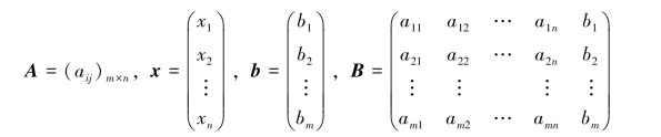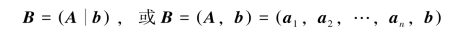 其中,A称为系数矩阵;x称为未知数向量;b称为常数项向量;B称为增广矩阵.按分块矩阵的记法,可记作