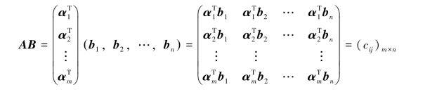 对于矩阵A=(aij)m×s与B=(bij)s×n的乘积矩阵AB=C=(cij)m×n,若把A按行分成m块,把B按列分成n块,则有