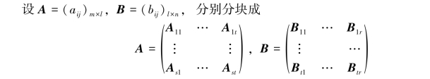 其中,Ai1,Ai2,…,Ait(i=1,2,…,s)的列数分别等于B1j,B2j,…,Btj(j=1,2,…,r)的行数,则
