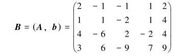 在上述变换过程中,实际上只是对方程组的系数和常数进行了线性运算,未知数并未参与运算.因此,若记方程组(2.22)的增广矩阵为