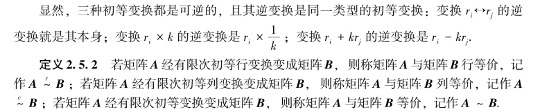 定义2.5.1 以下三种变换称为矩阵的初等行变换: