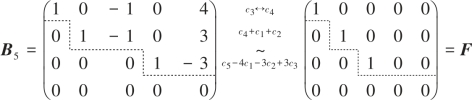 矩阵F称为矩阵B的标准形,其特点:F的左上角是一个单位矩阵,其余元素全为0.