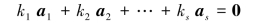 因为ai≠0,所以ki=0(i=1,2,…,s),即a1,a2,…,as线性无关.