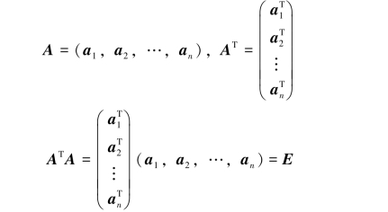 定理3.6.1 方阵A为正交矩阵的充分必要条件是A的列(或行)向量是单位向量,且两两正交.