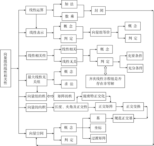 向量的线性相关性是线性代数的重点内容、也是难点内容之一,对逻辑推理能力要求较强,在学习时要深刻理解基本概念,搞清概念之间的相互关系,尤其要学会用定义作推导论证,推导中注意逻辑的正确性.