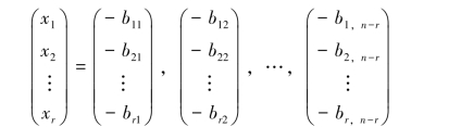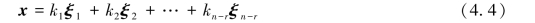 其中,k1,k2,…,kn-r为任意常数.称式(4.4)为方程组Ax=0的通解.