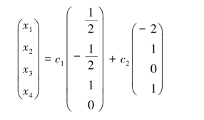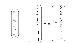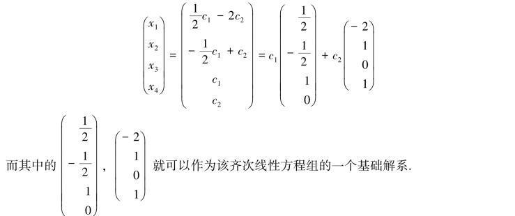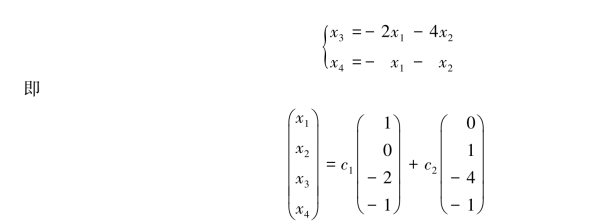 令x3=c1,x4=c2,代入并写成向量的形式,也可得到齐次线性方程组的通解为