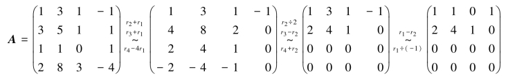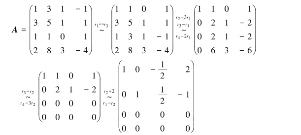 解 对系数矩阵A作初等行变换,化为行最简形矩阵: