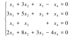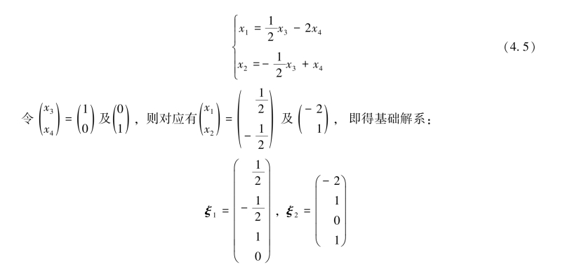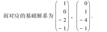 (2)求基础解系和通解除了上述方法外,还可用2.7节求解齐次线性方程组的方法:将同解方程组式(4.5)化简为