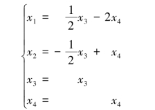 上式最后一个矩阵虽不是行最简形矩阵,但也具备行最简形矩阵的功能.按照这个矩阵,取x1,x2为自由未知量,便可写出通解: