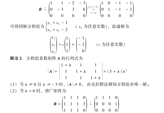 比较解法1与解法2,显见解法2较简单.但解法2的方法只适用于系数矩阵为方阵的情形.