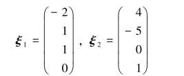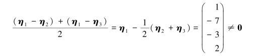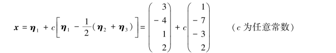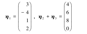 例4.2.2 设四元非齐次线性方程组Ax=b的系数矩阵A的秩为3,已知它的三个解向量为η1,η2,η3,其中