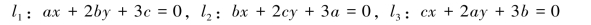 必要性.设三条直线l1,l2,l3交于一点,则二元线性方程组