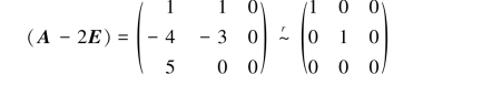 当λ2=λ3=2时,解线性方程组(A-2E)x=0,由