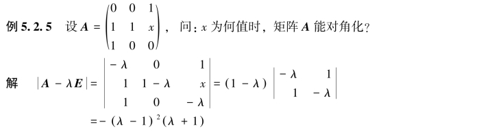 当A的特征方程有重根时,就不一定有n个线性无关的特征向量,也就不一定能对角化.