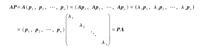 充分性.设A有n个线性无关的特征向量p1,p2,…,pn,依次与特征值λ1,λ2,…,λn相对应,根据特征值的定义式,有Api=λipi(i=1,2,…,n).