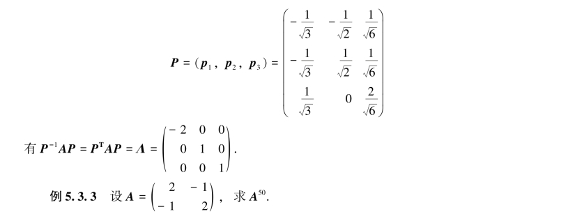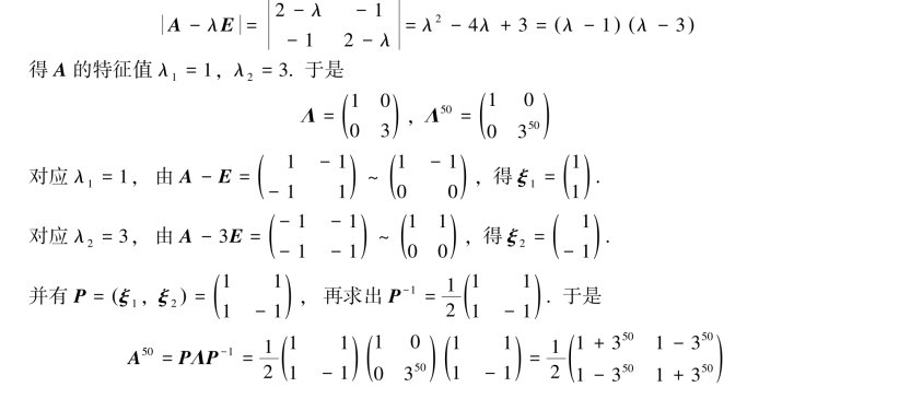 解 因A对称,故A可对角化,即有可逆矩阵P及对角阵Λ,使P-1AP=Λ.于是A=PΛP-1,从而A50=PΛ50P-1.