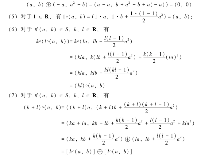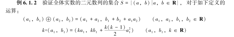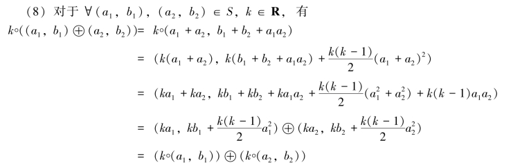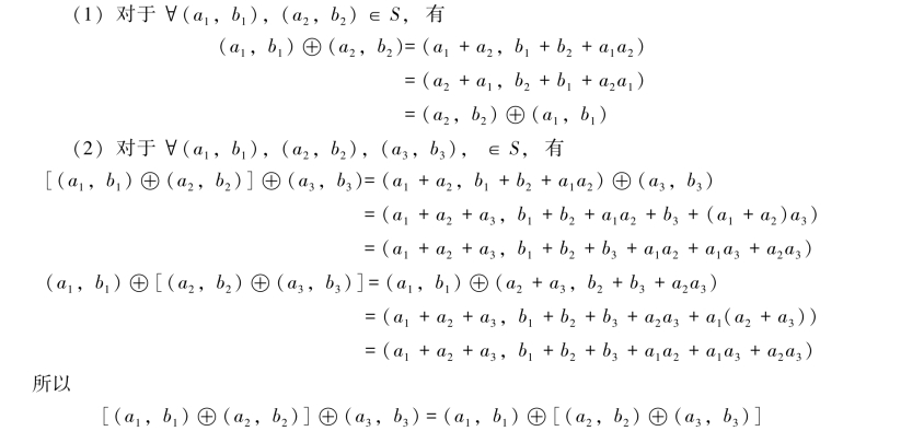 证明 显然,全体实数的二元数列的集合S对于所定义的运算是封闭的,且满足下面八条运算规律: