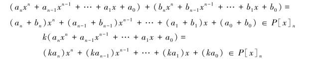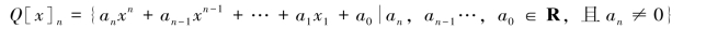 但是,由于0(anxn+an-1xn-1+…+a1x+a0)=0∉Q[x]n,因此Q[x]n,对数乘多项式运算不封闭.因而Q[x]n,不构成线性空间.