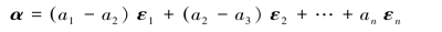 由于ε1,ε2,…,εn是Rn中n个线性无关的向量,因此是Rn的一个基.对于向量α=(a1,a2,…,an)T,有
