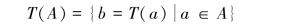 定义6.3.1 设有两个非空集合A,B,如果对于任一元素a∈A,按照一定规则,总有一个确定的元素b∈B和它对应,那么称这个对应规则为从集合A到集合B的映射,记作T,并记b=T(a),或b=Ta(a∈A).并说映射T把元素a变为b,b称为a在映射T下的像,a称为b在映射T下的源,A称为映射T的源集,像的全体所构成的集合称为像集,记作T(A),即