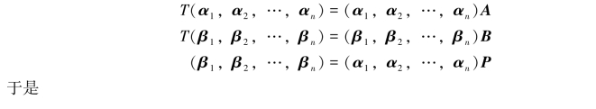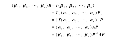 因为β1,β2,…,βn线性无关,所以B=P-1AP,即B与A相似,且两个基之间的过渡矩阵P就是相似变换矩阵.