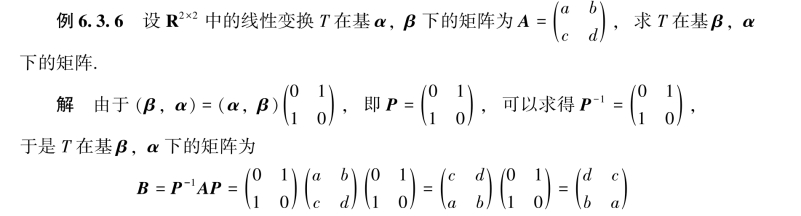 由此例可见:同一个线性变换在不同的基下一般有不同的矩阵.那么这些矩阵之间有什么关系呢?