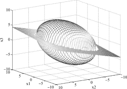其图形如附图1.1所示,显然f(x1,x2,x3)=0表示椭球面.