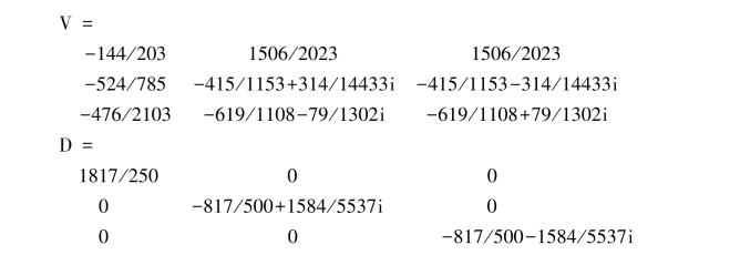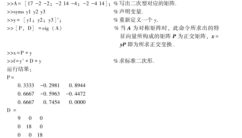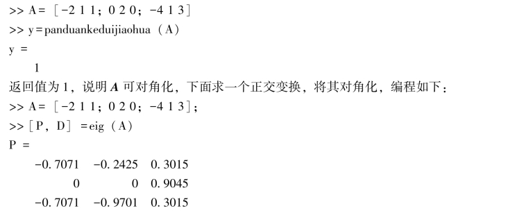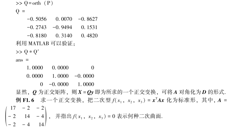 但由于所求特征向量所构成矩阵P不是正交矩阵,因此我们再调用orth()命令将其正交化: