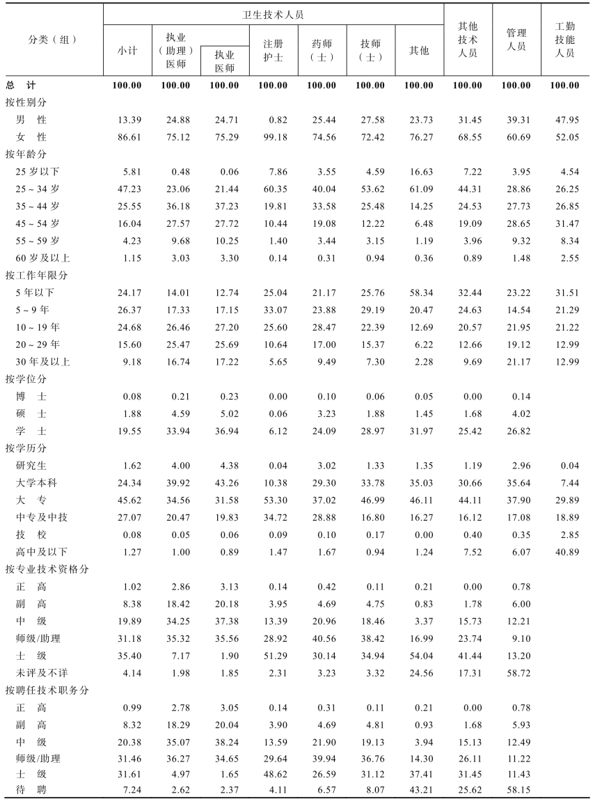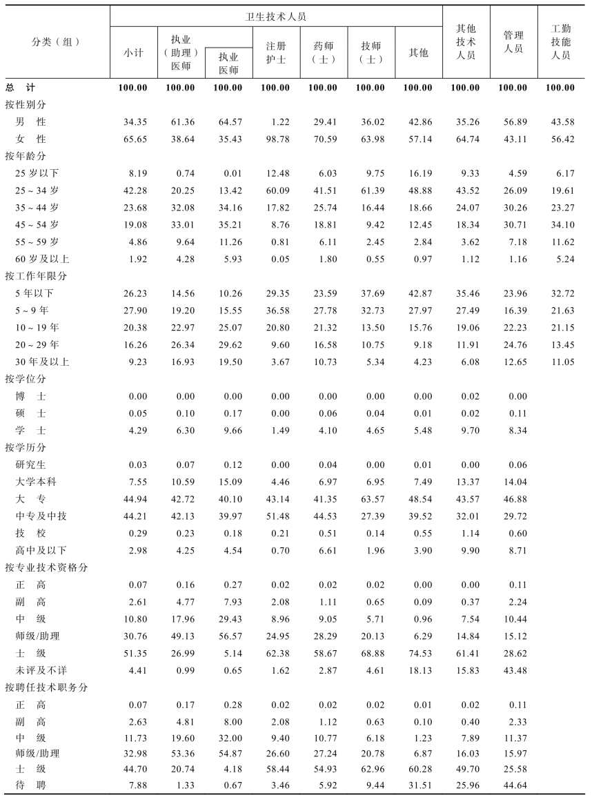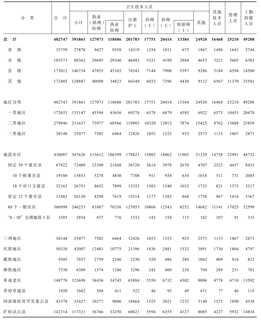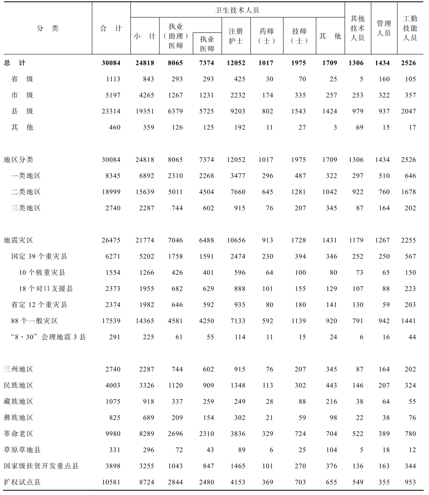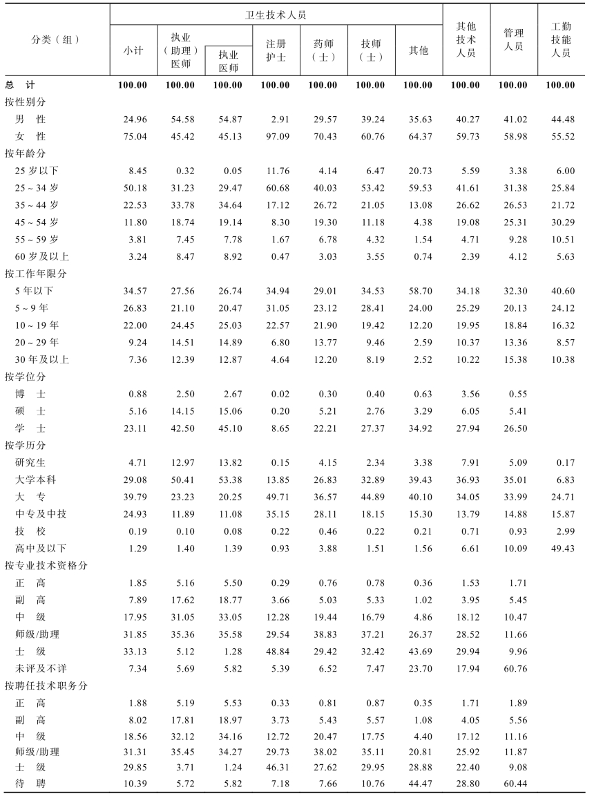 注:本表按城乡及按经济类型分卫生技术人员总数中不包括乡镇卫生院在村卫生室工作的人员数(这部分人员计入乡镇卫生院中)。