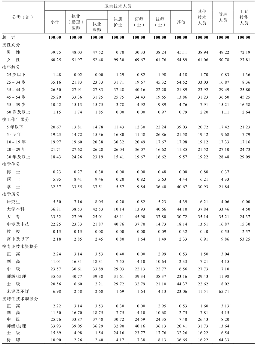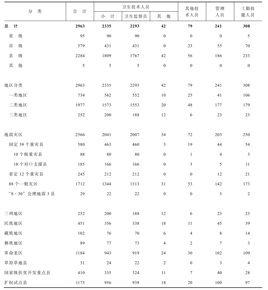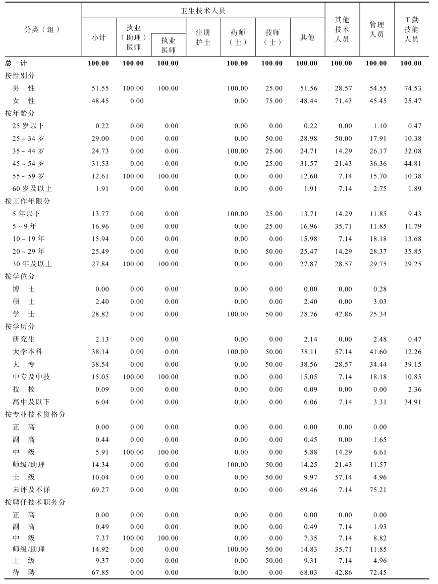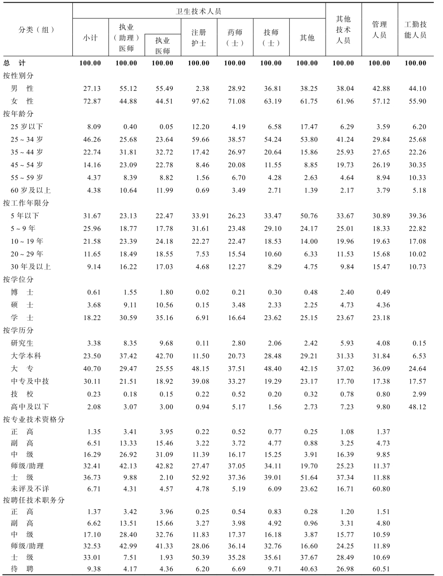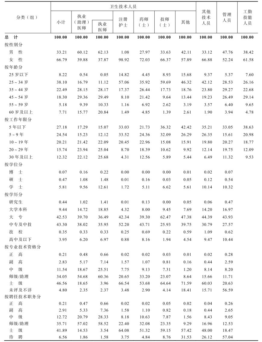 注:本表按城乡及按经济类型分卫生技术人员总数中不包括乡镇卫生院在村卫生室工作的人员数(这部分人员计入乡镇卫生院中)。