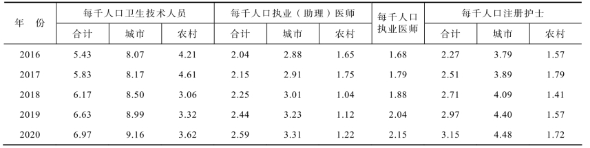 表2-2-1 2016—2020年全省每千人口卫生技术人员数(按城乡分)