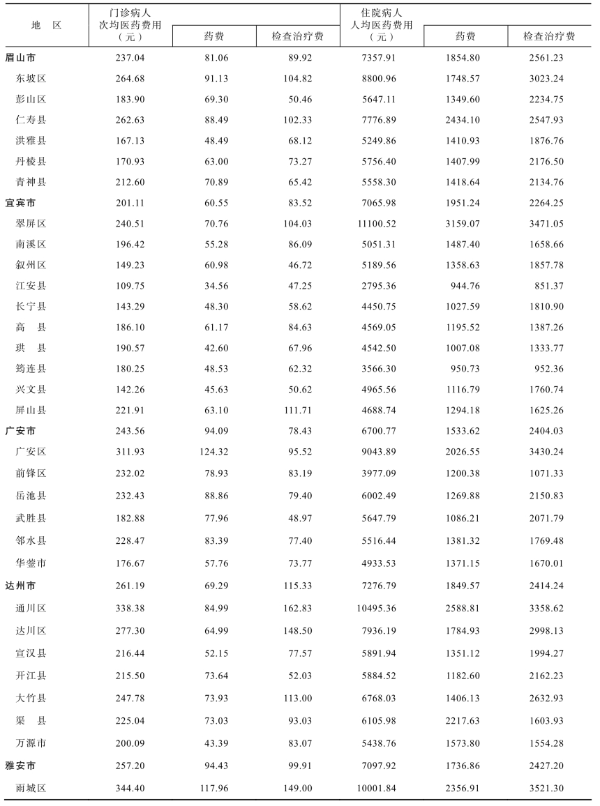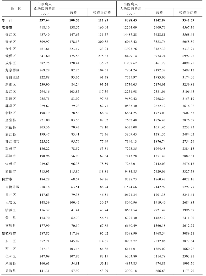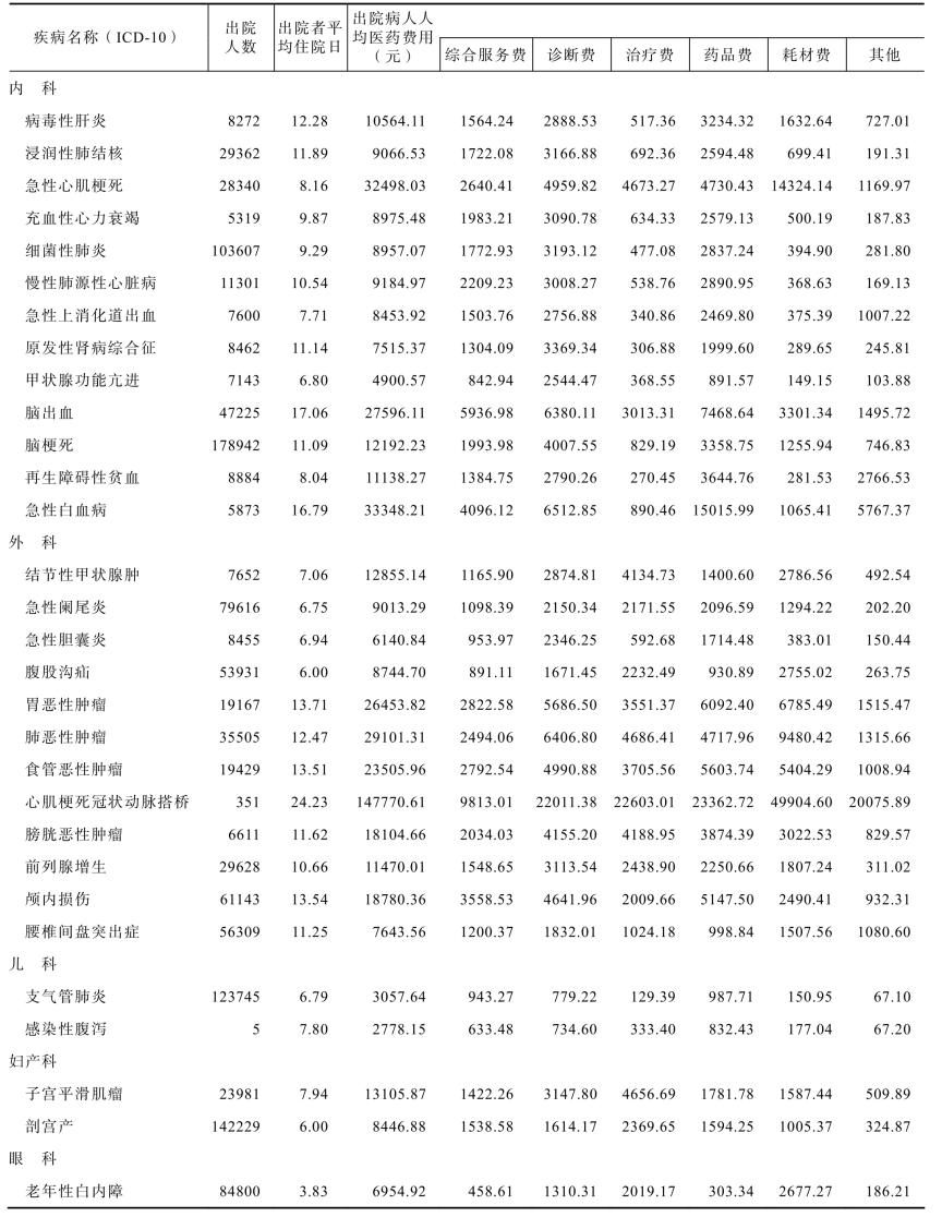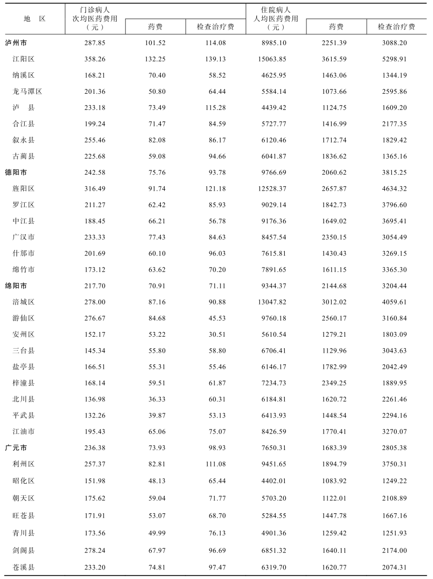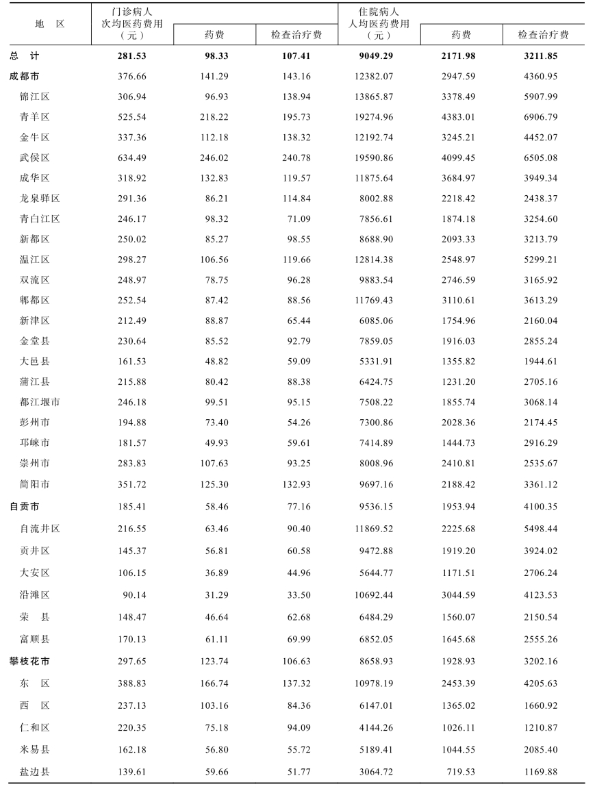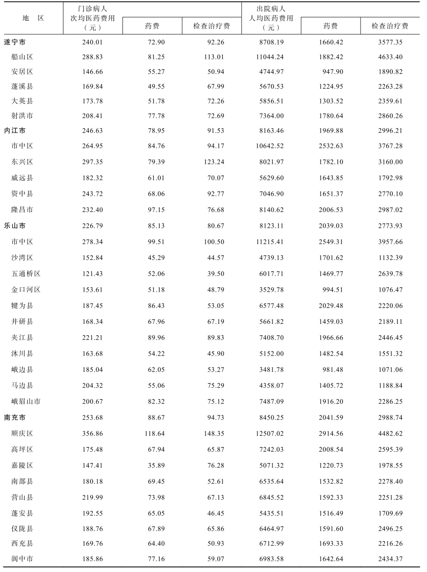 注:① 按当年价格计算;② 出院病人检查治疗费中含手术费。